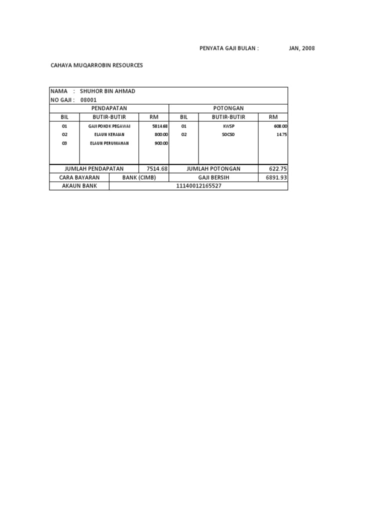 Contoh Slip Bank Cimb Untuk Gaji